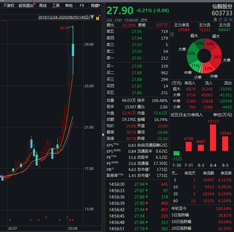 從近期的走勢來看,仙鶴股份的股票呈現(xiàn)出穩(wěn)健上升的態(tài)勢,在股市的波動中,仙鶴股份始終保持著穩(wěn)定的業(yè)績和強(qiáng)大的市場競爭力,這得益于公司不斷創(chuàng)新、追求卓越的精神以及良好的市場口碑,公司的財務(wù)狀況良好,為投資者提供了堅(jiān)實(shí)的保障。